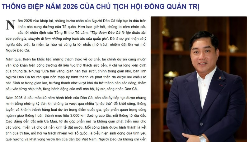 THÔNG ĐIỆP NĂM 2026 CỦA CHỦ TỊCH HỘI ĐỒNG QUẢN TRỊ