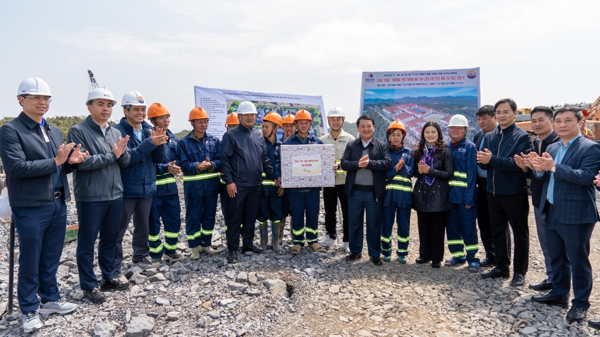 Ông Hồ Minh Hoàng - Chủ tịch HĐQT Tập đoàn Đèo Cả tặng quà động viên CB-NV đang làm việc tại dự án Đồng Đăng - Trà Lĩnh.