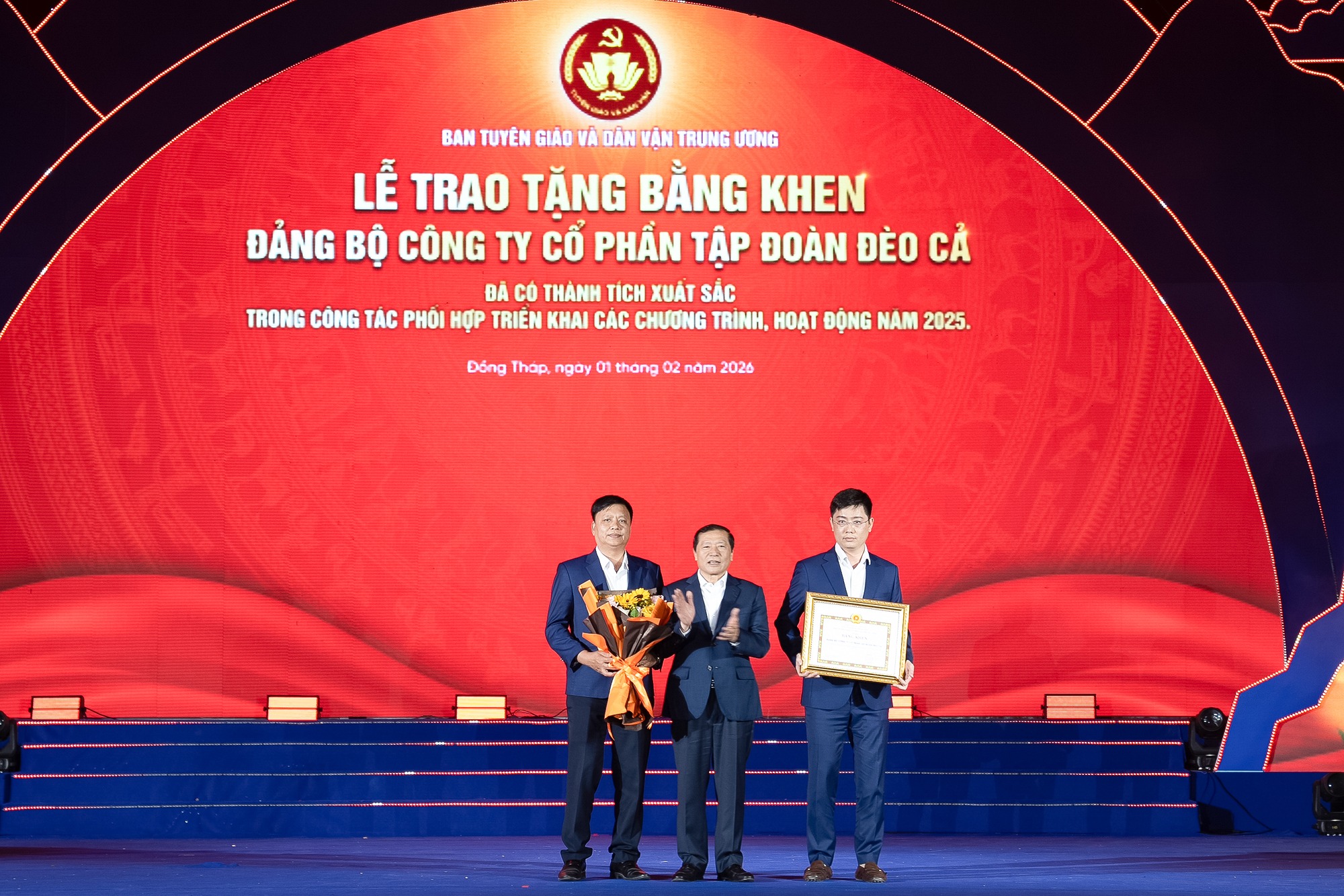 Trong khuôn khổ chương trình, Đảng bộ Tập đoàn Đèo Cả vinh dự đón nhận Bằng khen của Ban Tuyên giáo và Dân vận Trung ương. Đây là sự ghi nhận đối với những đóng góp nổi bật của Đảng bộ và tập thể Tập đoàn trong công tác xây dựng Đảng, phát triển doanh nghiệp gắn với trách nhiệm xã hội.