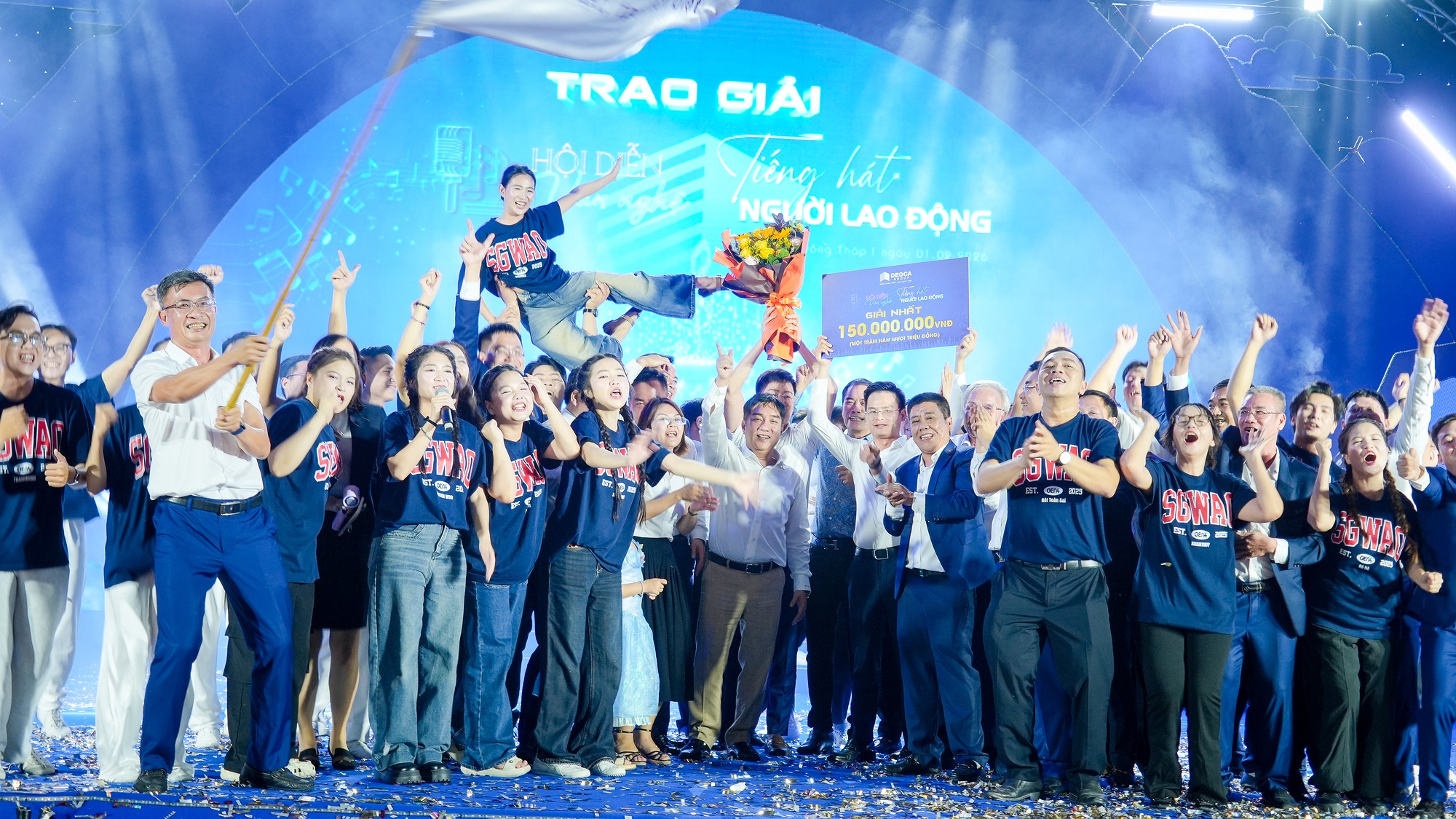 Ban Tổ chức đã trao thưởng cho các tập thể, đội thi xuất sắc tại Hội diễn văn nghệ Tiếng hát người lao động Tập đoàn với chủ đề “Kỳ tích”.