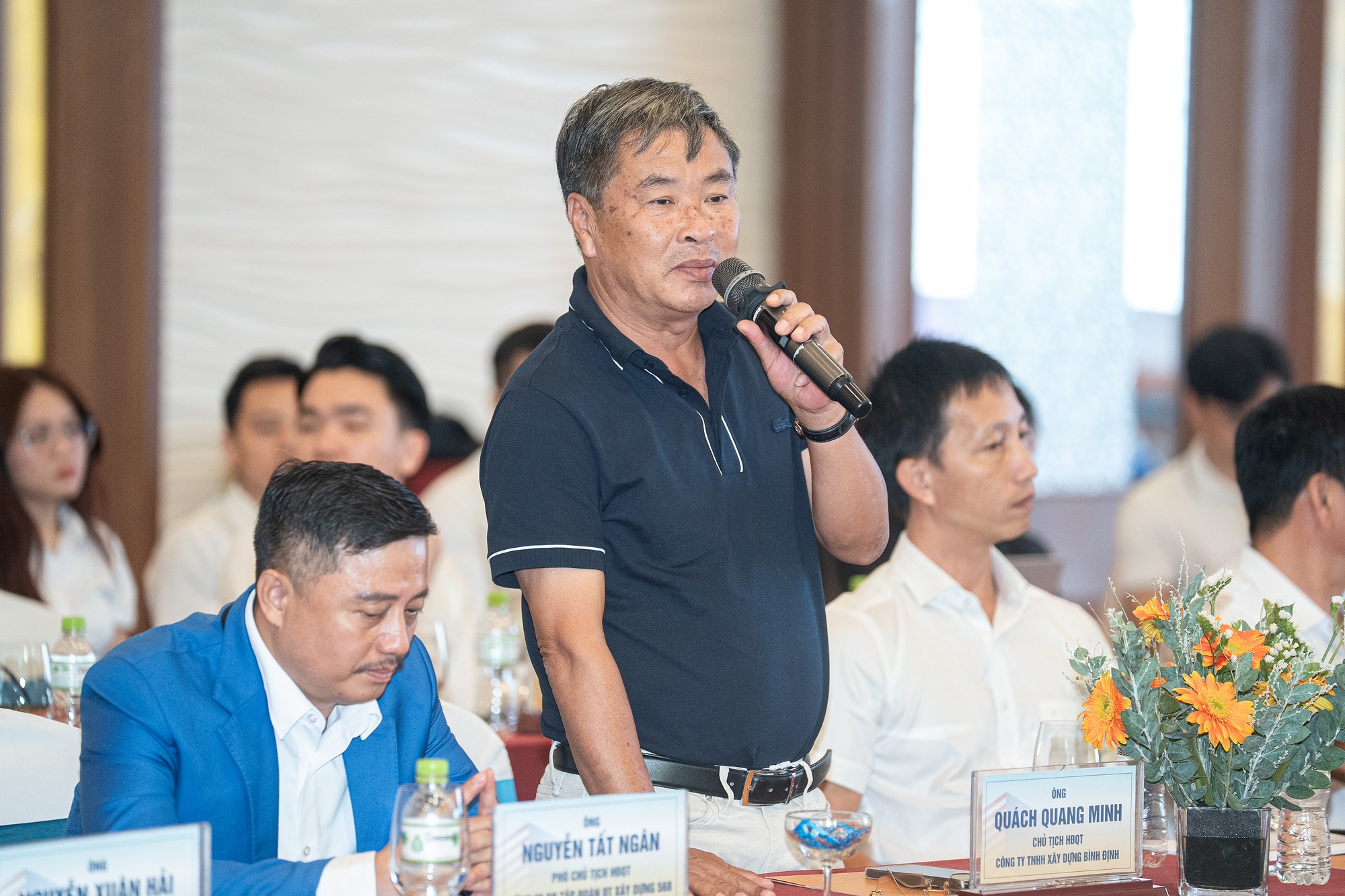 Ông Quách Quang Minh – Chủ tịch HĐQT Công ty TNHH Xây dựng Bình Định phát biểu tại cuộc họp.