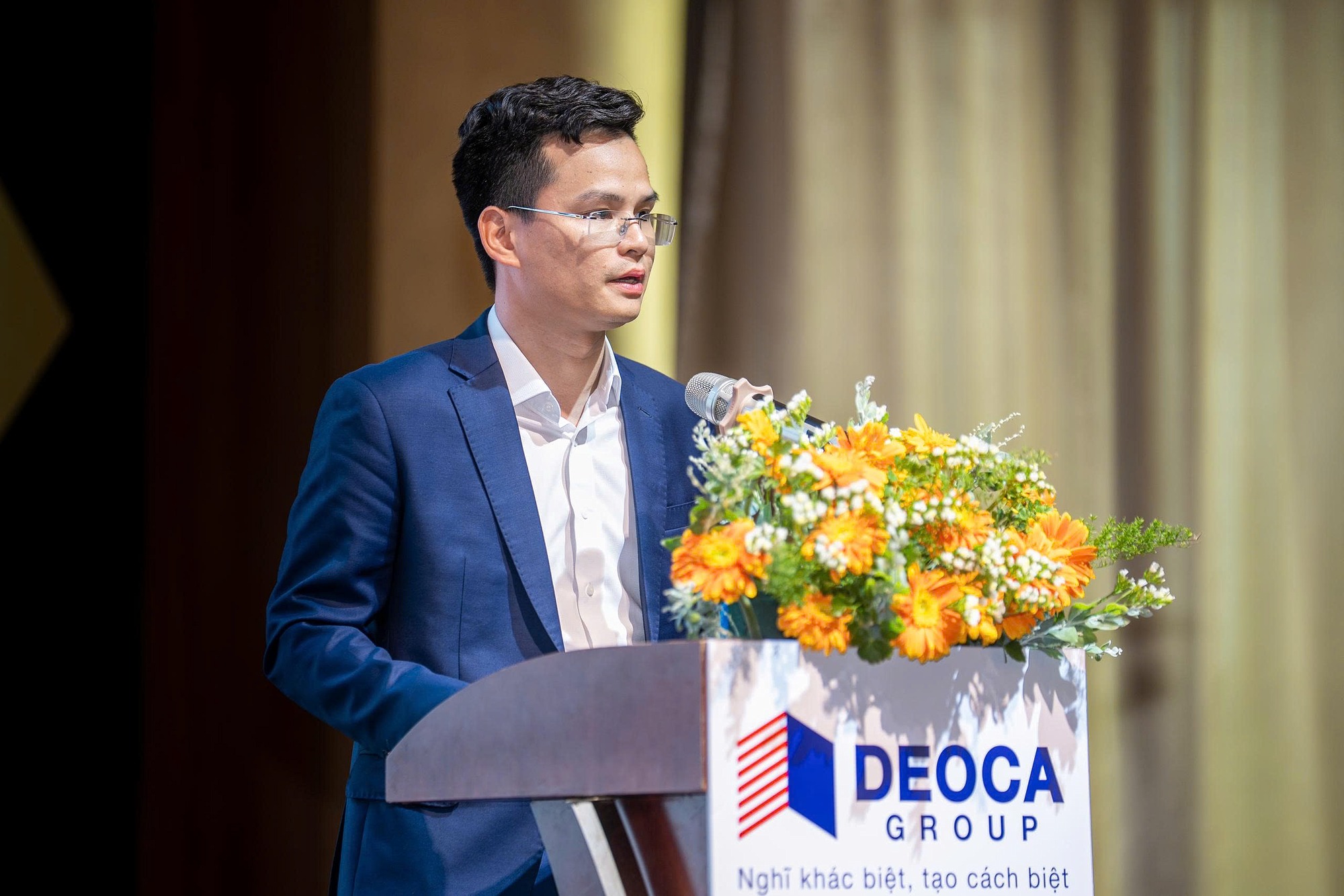 Ông Khương Văn Cương - Tổng giám đốc Tập đoàn Đèo Cả phát biểu tại cuộc họp.