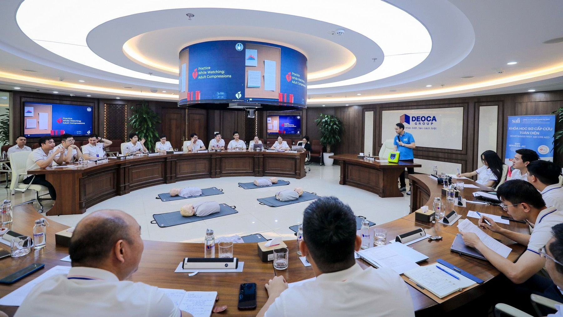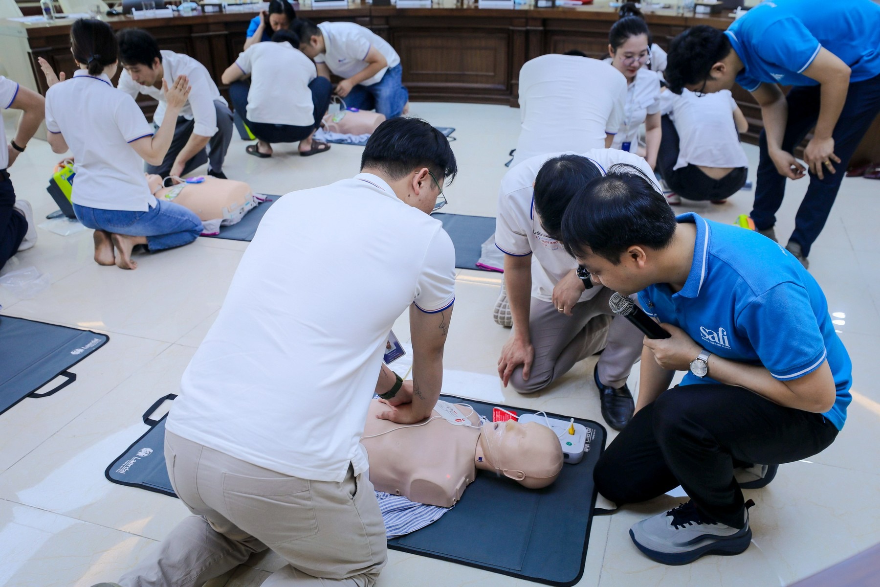 Trong hai ngày 11-12/4/2026, Tập đoàn Đèo Cả phối hợp với Công ty Cổ phần Dịch vụ SAFI tổ chức chương trình huấn luyện sơ cấp cứu cho hơn 70 cán bộ, nhân viên tại văn phòng Hà Nội và TP.HCM. Khóa học được triển khai theo tiêu chuẩn của Hiệp hội Tim mạch Hoa Kỳ (AHA), nhằm trang bị kỹ năng nhận diện và xử lý các tình huống khẩn cấp về sức khỏe.