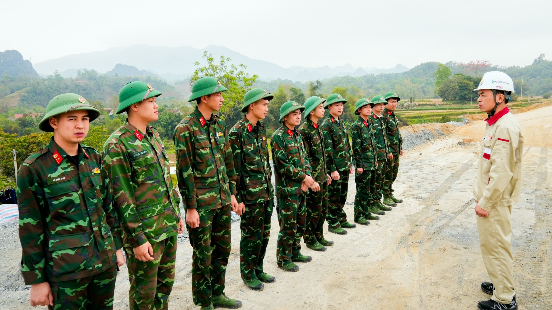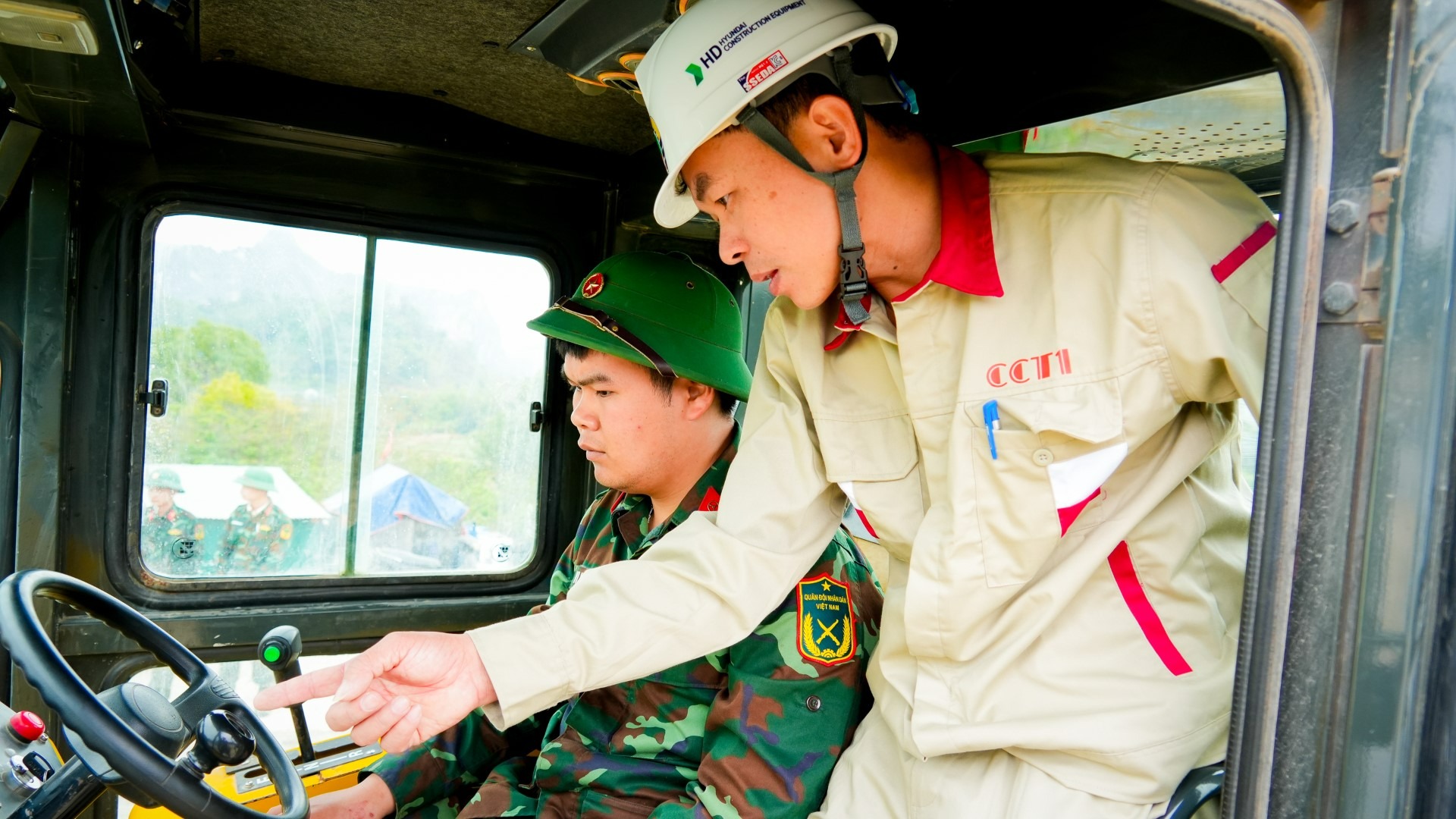 7 giờ sáng trên công trường cao tốc Đồng Đăng – Trà Lĩnh, Thiếu úy Vi Văn Lự – Lữ đoàn Pháo binh 382 (Quân khu 1), nhanh chóng cùng các đồng đội tập hợp tại khu vực thực hành. Cùng anh có 16 sĩ quan quân nhân chuyên nghiệp cùng tham gia khóa đào tạo vận hành máy lu, dưới sự hướng dẫn trực tiếp của Giảng viên Chu Đặng Quý – Khoa Công trình, Trường Cao đẳng GTVT TW1.