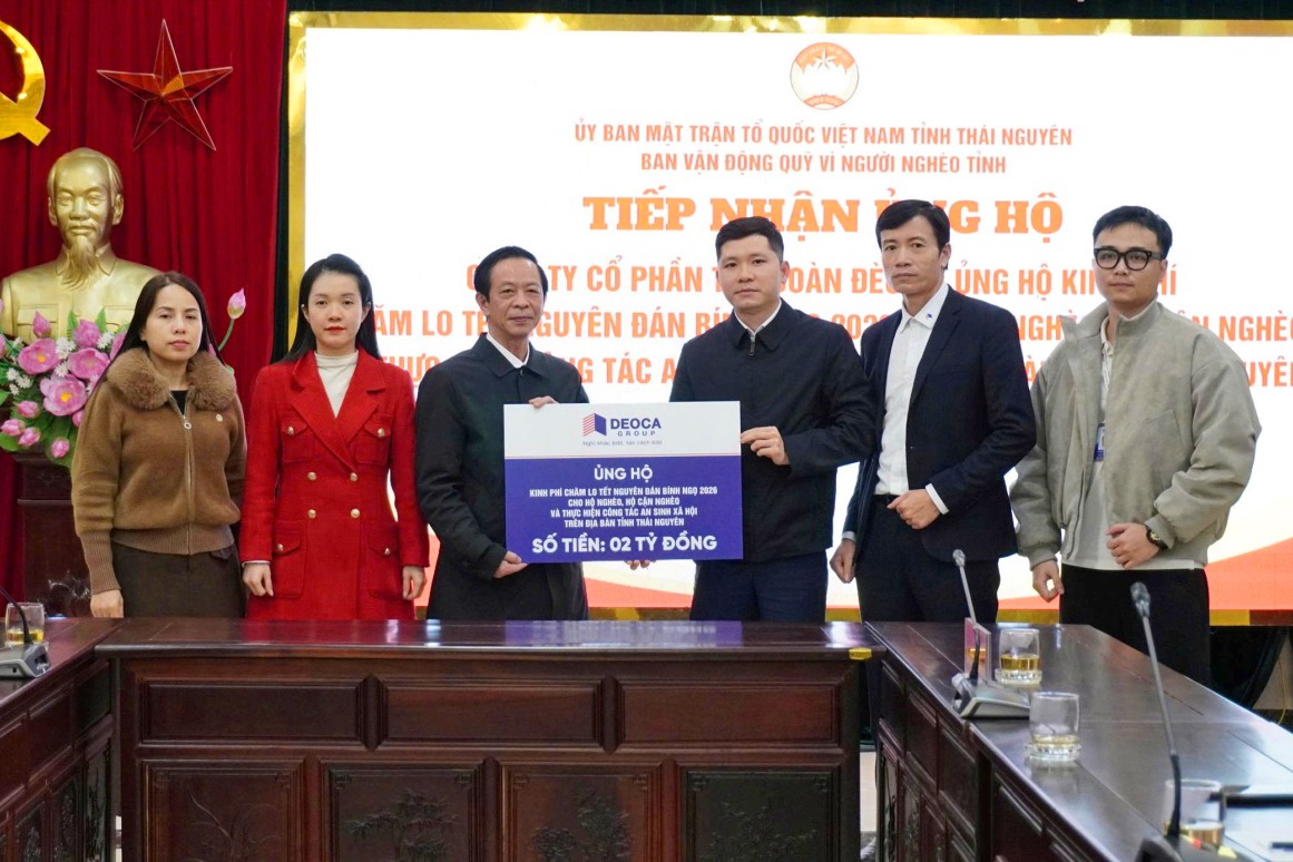 Tập đoàn Đèo Cả trao 2 tỷ đồng hỗ trợ, chăm lo Tết Bính Ngọ 2026 cho các hộ nghèo, cận nghèo tỉnh Thái Nguyên.