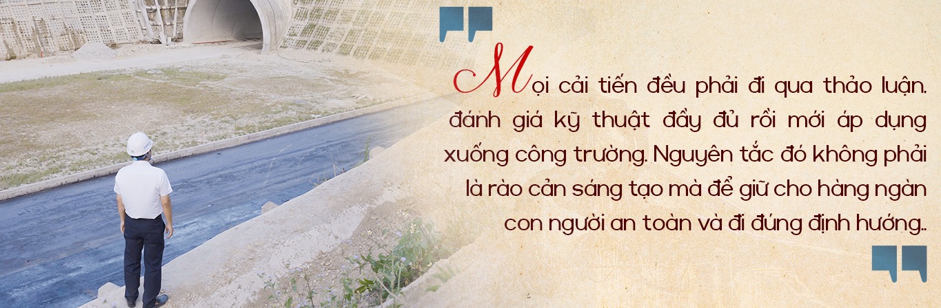 Tôi hay nói với anh em rằng nhiều kỹ sư từ Nhật Bản, Trung Quốc hay châu Âu chọn cách bám chặt lý thuyết NATM. Cách tiếp cận của chúng ta khác, khi đã bảo đảm an toàn 100% thì không có lý do gì để không tìm cách làm tối ưu hơn. Đó có lẽ là tinh thần “nghĩ khác biệt, tạo cách biệt” mà tôi thấm nhuần khi khoác lên mình “màu áo” Đèo Cả.